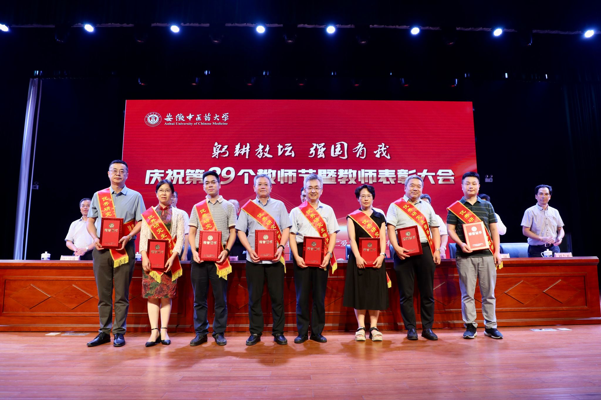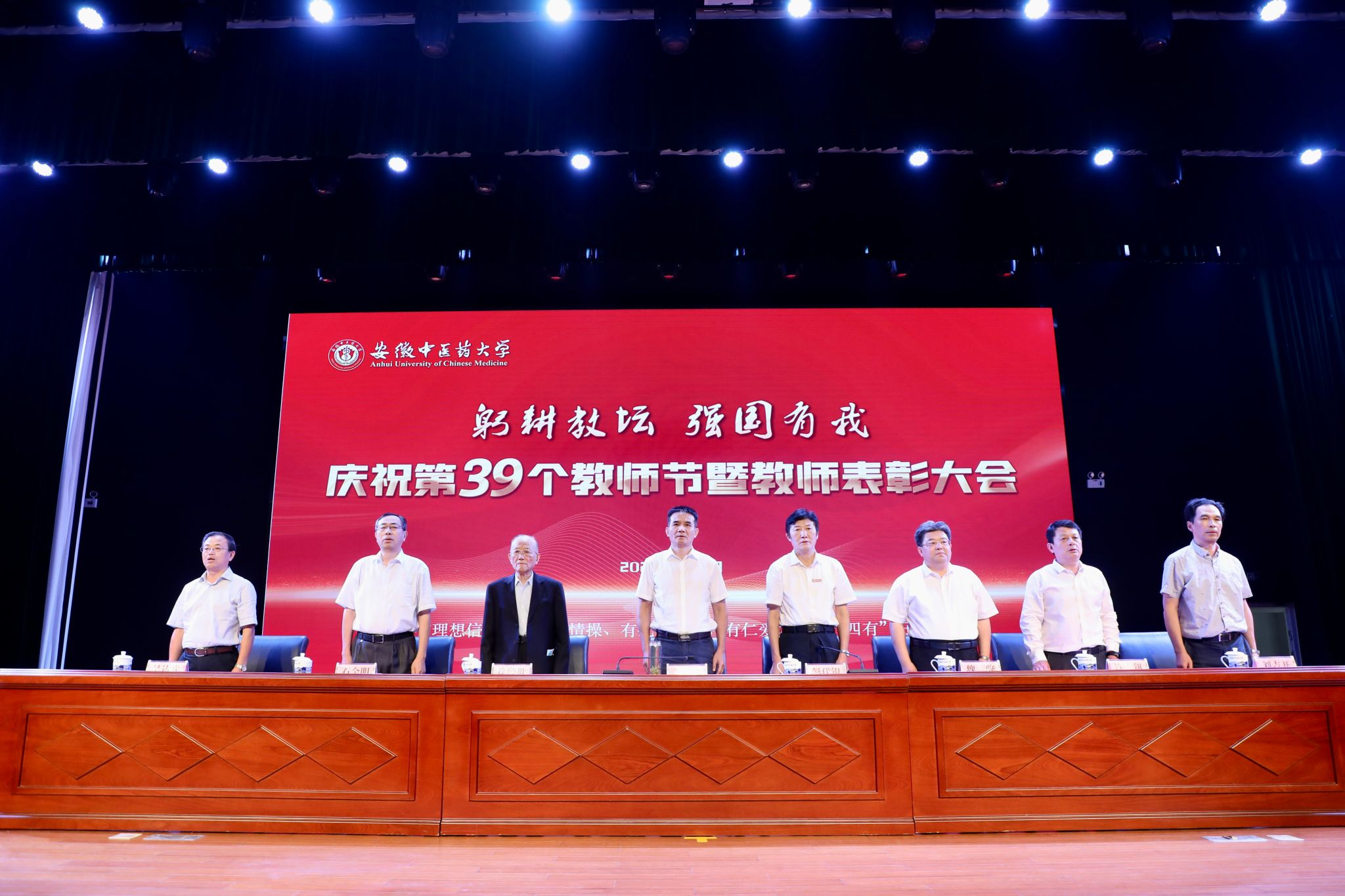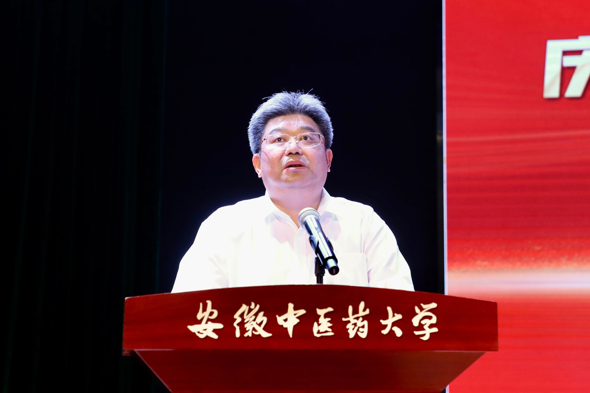 王琦代表学校党委、行政向不辞辛劳、默默耕耘在教学、科研、医疗、管理服务第一线的广大教职医护员工表示衷心感谢,向多年来一直支持学校改革、建设与发展的全校离退休老教师、老同志致以崇高敬意,向获得各级表彰的先进集体、先进个人、优秀教师表示诚挚祝贺。他表示,两年来教师队伍结构持续优化,涌现出一大批优秀的教师代表,人才引进取得重大突破,以教师为主体的理念深入人心,教师队伍建设成效斐然。他向全体教职医护员工提出三点希望:要爱党和国家,坚定理想信念,自觉做中国特色社会主义事业坚定的信仰者和忠实的实践者;要爱学校,树立大局意识、主人翁意识和平台归属意识;要爱事业,落实立德树人根本任务,不忘初心、拉高标杆、潜心钻研。他强调,当前中医药发展迎来前所未有的大好机遇,相信在大家的共同努力下,学校“振兴中医药,建设‘双一流’”的目标一定能够实现,用实际行动助力现代化美好安徽建设。