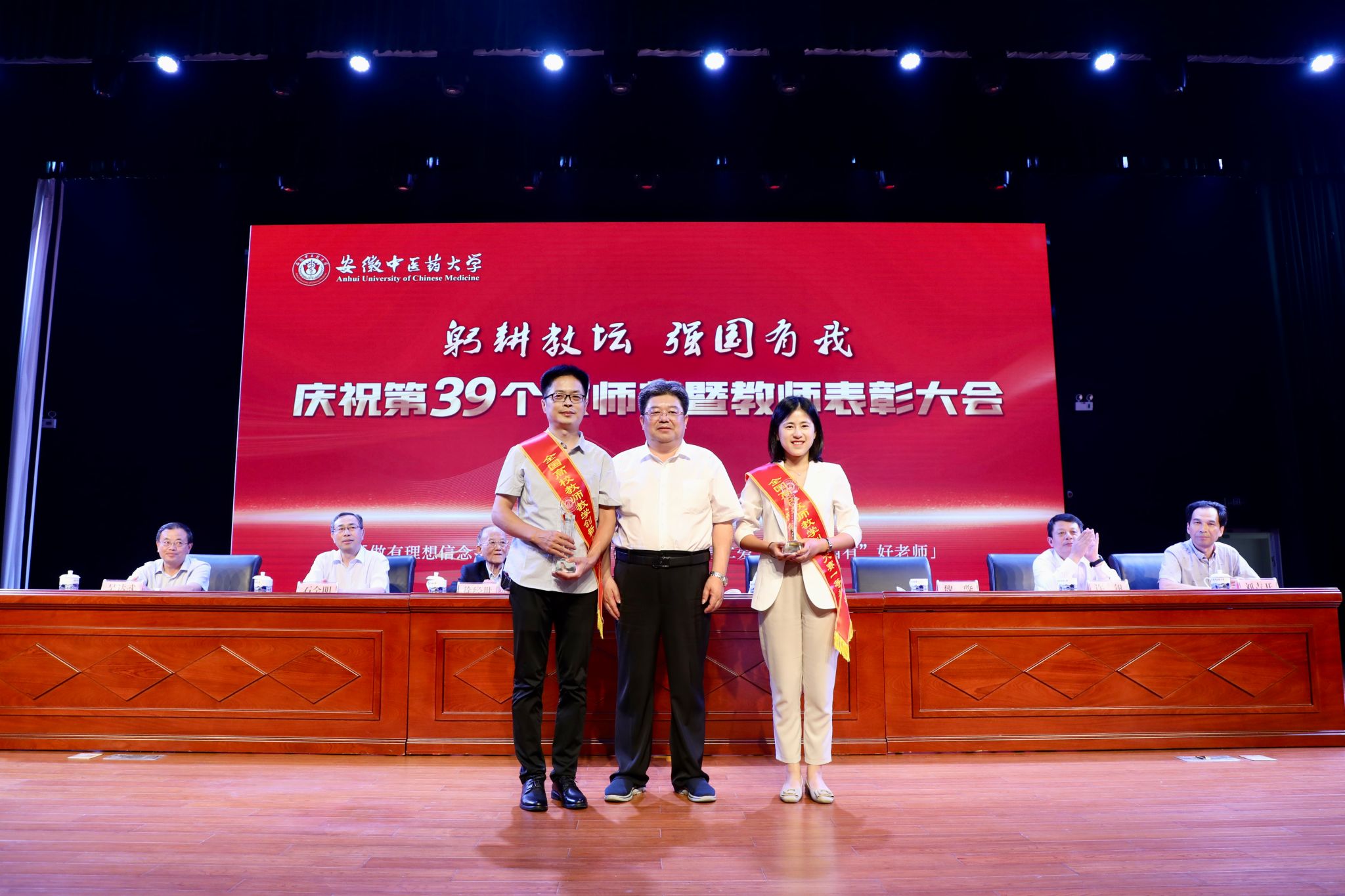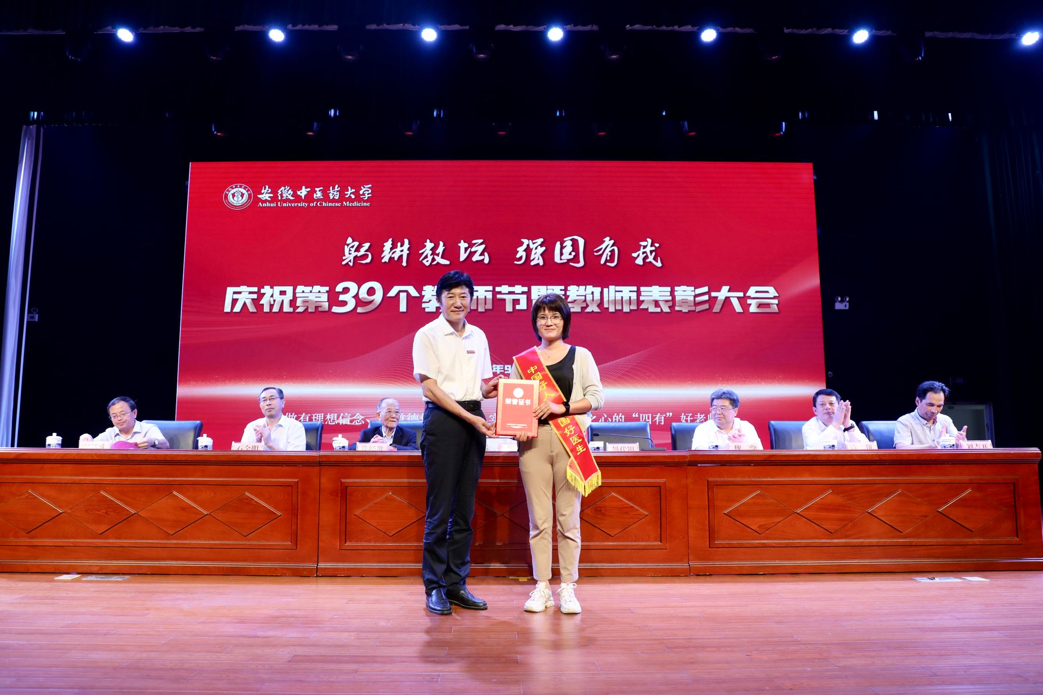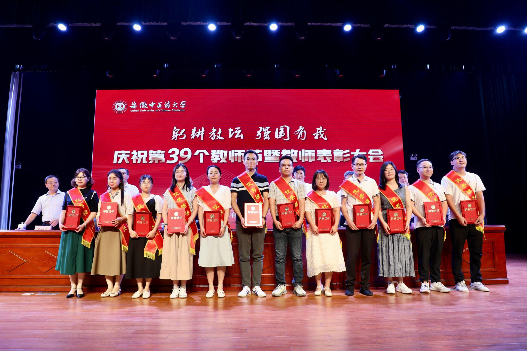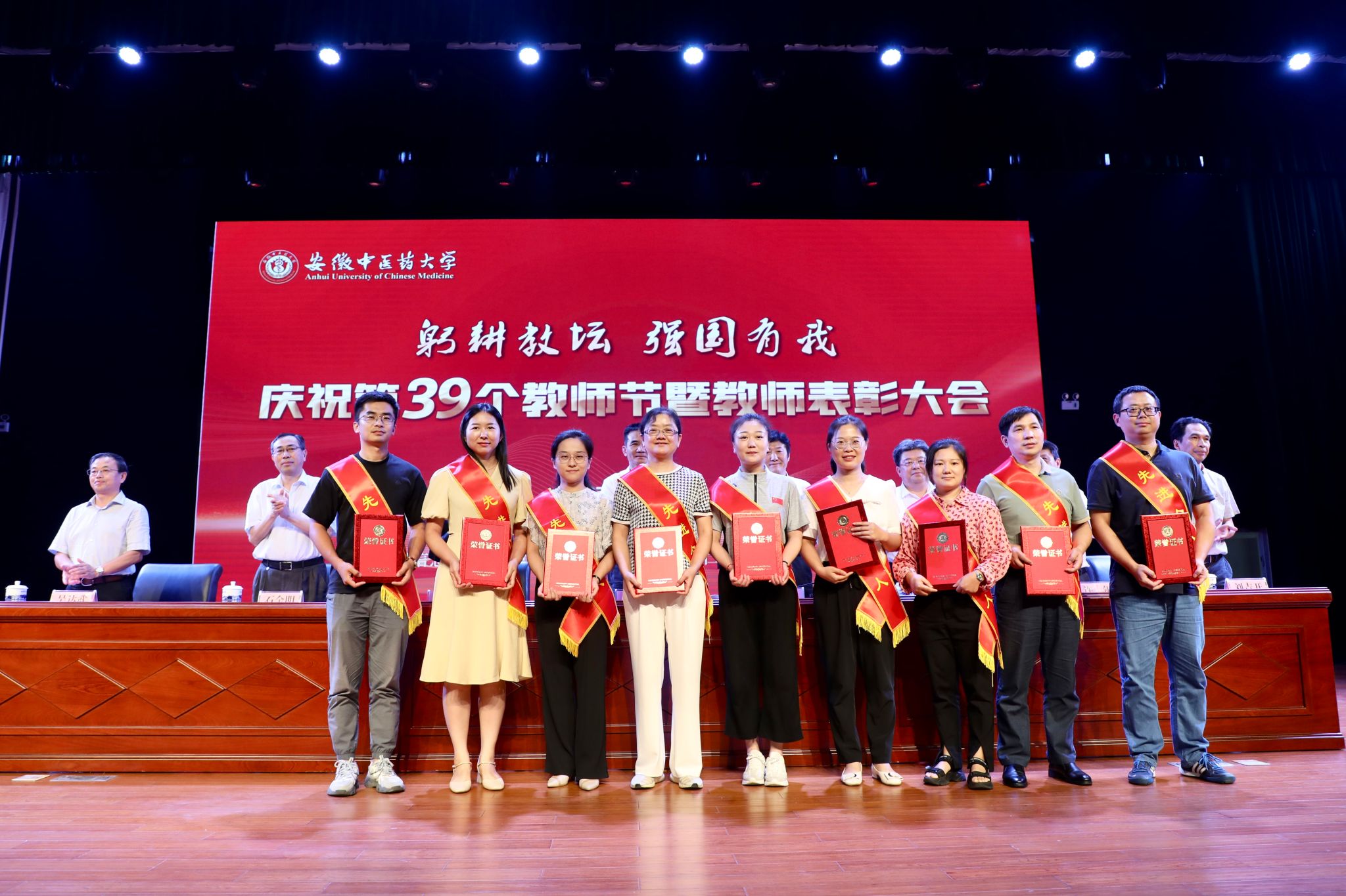 王琦代表学校党委、行政向不辞辛劳、默默耕耘在教学、科研、医疗、管理服务第一线的广大教职医护员工表示衷心感谢,向多年来一直支持学校改革、建设与发展的全校离退休老教师、老同志致以崇高敬意,向获得各级表彰的先进集体、先进个人、优秀教师表示诚挚祝贺。他表示,两年来教师队伍结构持续优化,涌现出一大批优秀的教师代表,人才引进取得重大突破,以教师为主体的理念深入人心,教师队伍建设成效斐然。他向全体教职医护员工提出三点希望:要爱党和国家,坚定理想信念,自觉做中国特色社会主义事业坚定的信仰者和忠实的实践者;要爱学校,树立大局意识、主人翁意识和平台归属意识;要爱事业,落实立德树人根本任务,不忘初心、拉高标杆、潜心钻研。他强调,当前中医药发展迎来前所未有的大好机遇,相信在大家的共同努力下,学校“振兴中医药,建设‘双一流’”的目标一定能够实现,用实际行动助力现代化美好安徽建设。