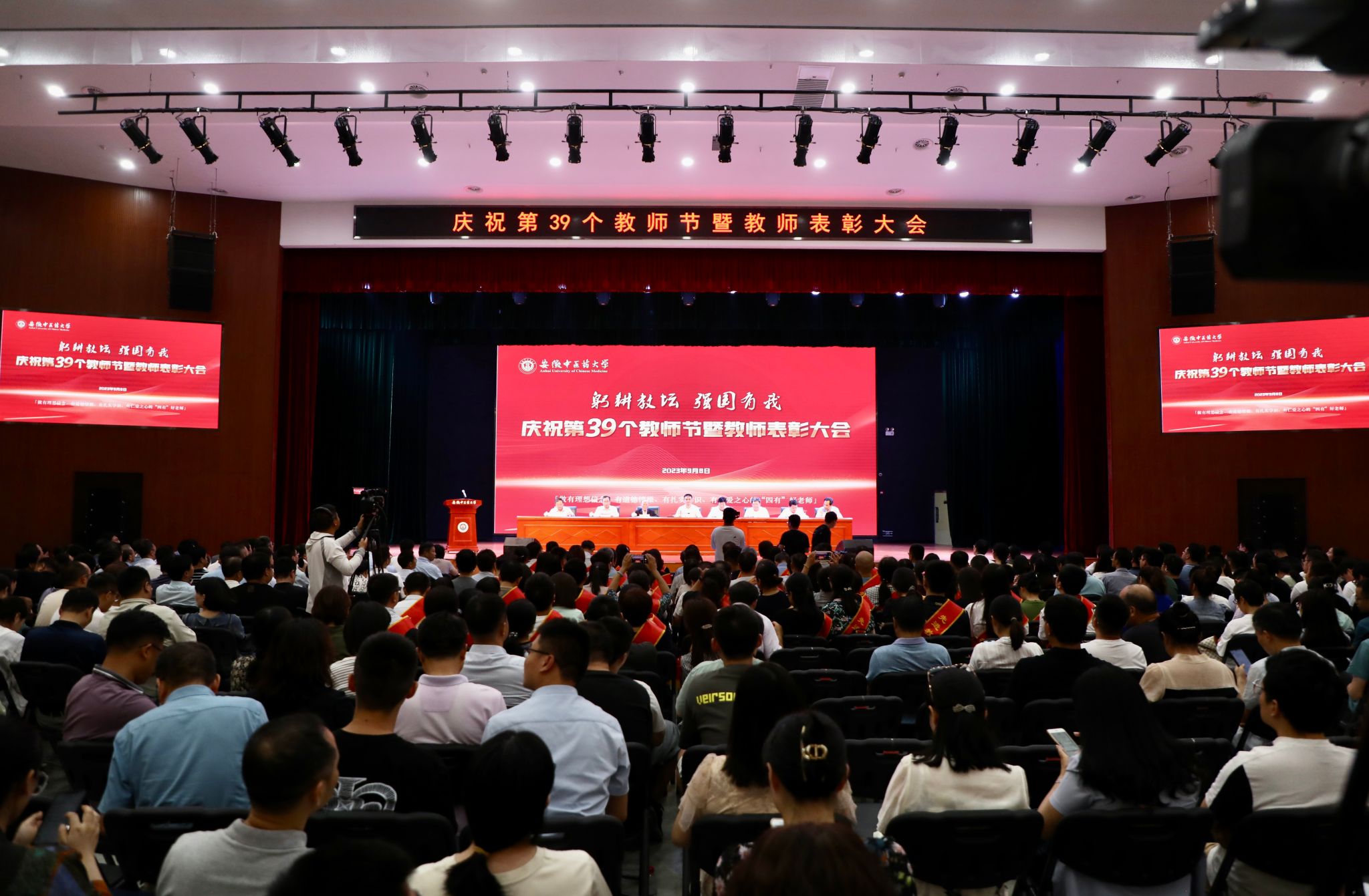 百年大计,教育为本;教育大计,教师为本。9月8日下午,我校在少荃湖校区隆重举办庆祝第39个教师节暨教师表彰大会。大会以“躬耕教坛,强国有我”为主题,充分展现了我校全体教师爱党爱国、敬业奉献的精神风貌以及为党育人、为国育才的使命担当。