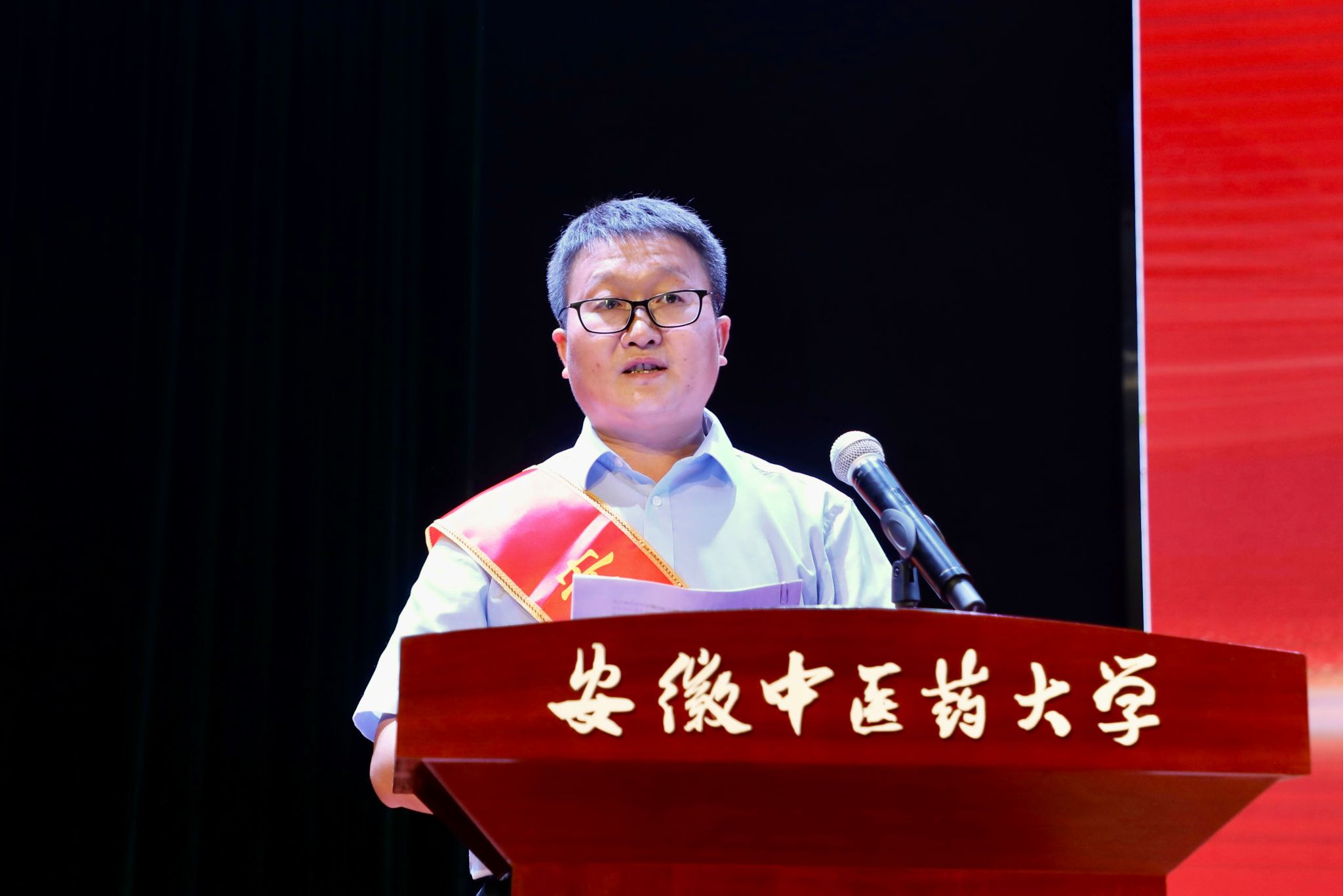 第三批“全国高校黄大年式教师团队”我校中西医结合临床教师团队负责人杨文明、第四届安徽省最美教师杨青山在会上发言。他们表示,将继续坚持为党育人、为国育才的初心使命,勇挑重担、勇往直前,努力为促进中医药高质量发展,争创“双一流”大学贡献应有力量。