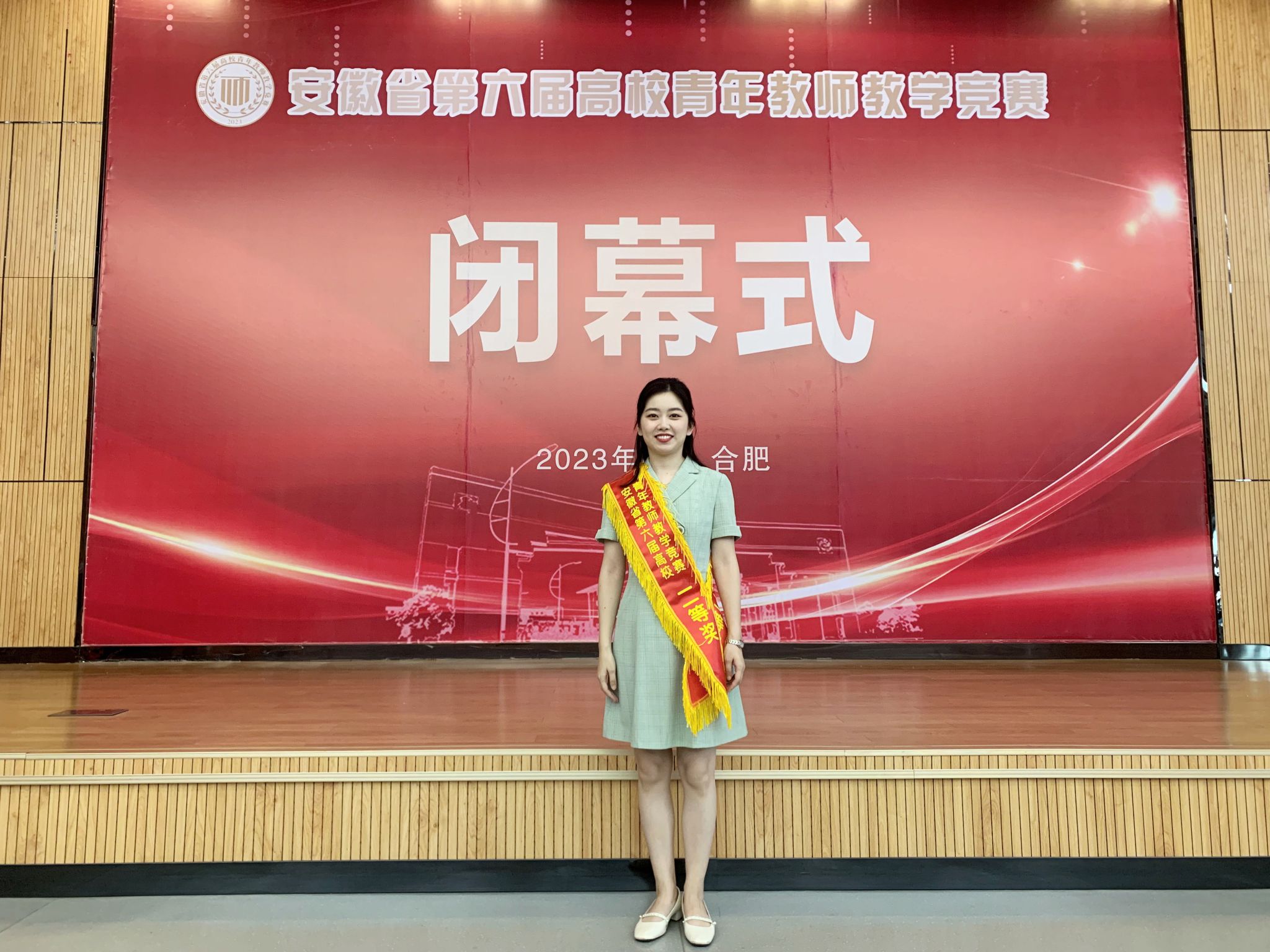 教学竞赛崭露头角。她积极参与各级各类教学竞赛,于2022年,获首届安徽省高等医学教育合作委员会“课程思政”案例征集比赛本科院校组三等奖;中医学院2022年青年教师教学基本功竞赛二等奖。于2023年,先后获中医学院青年教师基本功竞赛一等奖、学校第21届青年教师基本功竞赛一等奖、安徽省第六届高校青年教师教学竞赛医科组二等奖。