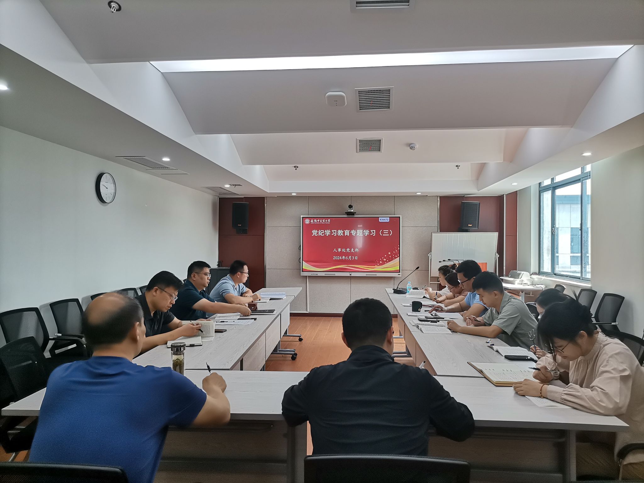 6月3日上午,人事处党支部在图书馆826会议室开展党纪学习教育第三次专题学习会,会议由党支部书记张军主持。